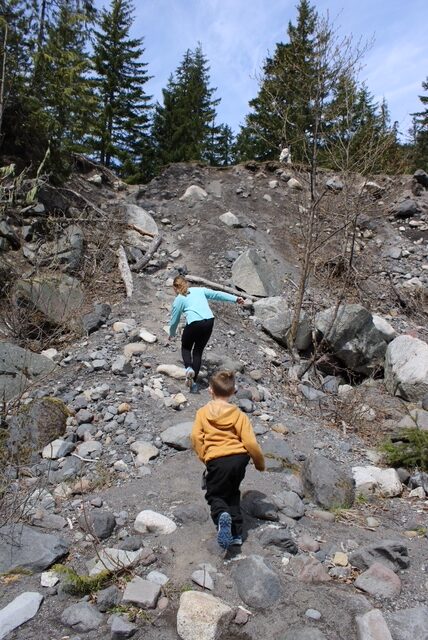 While there is a slight possibility that I’ve gotten my locations mixed up, I believe the Ohanapecosh area is where my children scraped together snowballs. They were able to throw them over the edge of the lookout point at nature below.